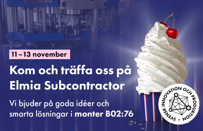 Tisdagen den 11 november öppnas dörrarna till årets underleverantörsmässa på Elmia – och givetvis kommer vi att finnas på plats. Vår monter är den självklara…